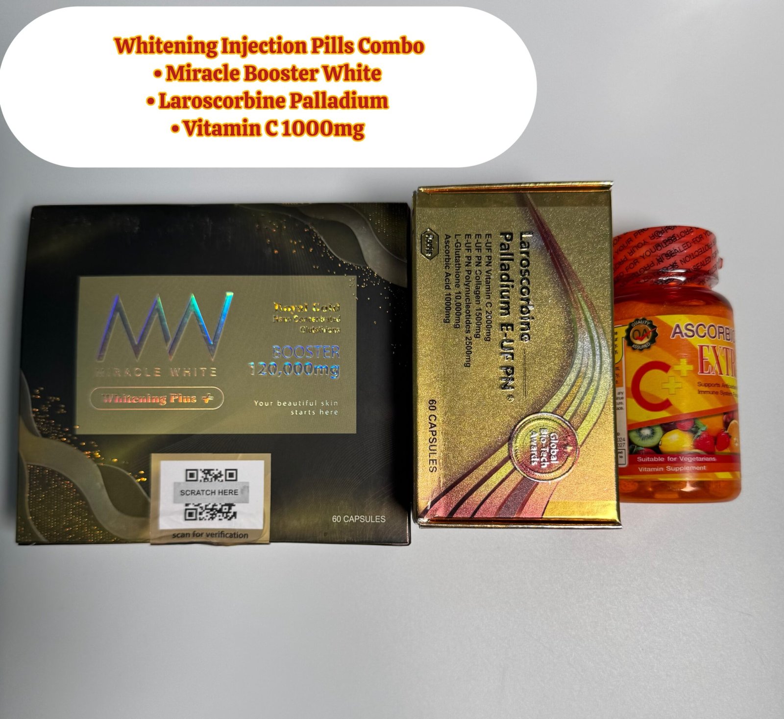 Miracle White, Laroscorbine, Glutax Crystal, Gluta Pearl, So White, Vitamin C Injection Pills Combo Super White 3X